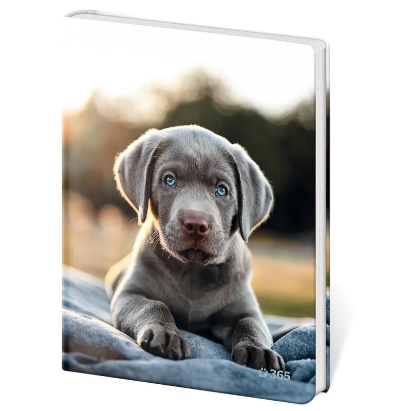 Památník ve formátu A5 s motivem štěněte o rozměru 13 x 18 cm s 60 čistými listy. Památník je šitý, s kulatým hřbetem a pevnými deskami.