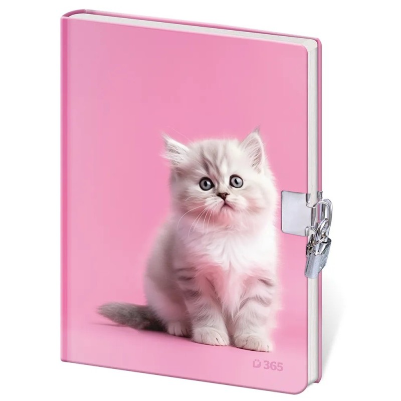 Památník se zámkem s motivem kočičky o rozměru 13x18 cm s 60 čistými listy. Památník je šitý, s kulatým hřbetem a pevnými deskami.