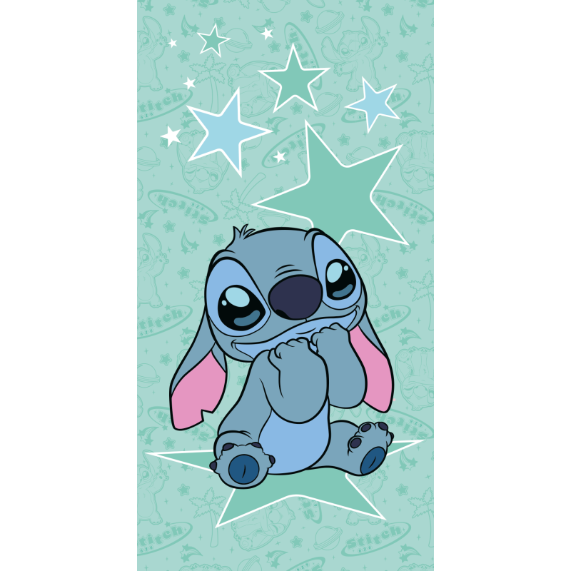 Dětská bavlněná osuška Lilo a Stitch Starstitch 70×140 cm z kvalitní 100% bavlny. Roztomilý motiv Stitche na mentolovém podkladu s hvězdami. Měkká, savá a ideální na doma, k bazénu i na dovolenou.