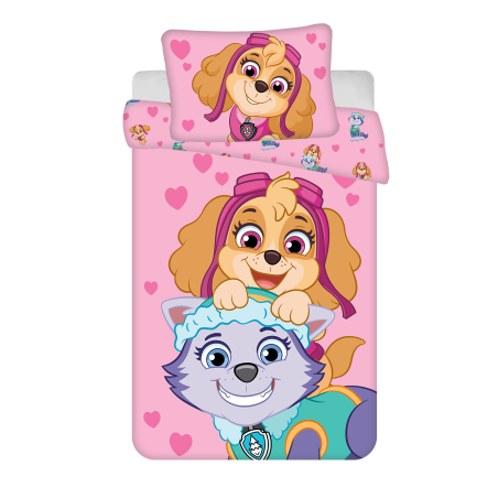 Roztomilé dětské povlečení Paw Patrol 526 baby s motivem Skye a Everest na růžovém pozadí. Vyrobeno ze 100% bavlny, příjemné na dotek, s praktickým zipem. Ideální pro dětskou postýlku.
