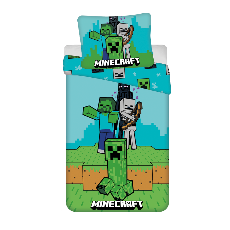 Skvělý dárek pro každého fanouška Minecraftu – povlečení Mobs Here přináší do ložnice dobrodružství, barvy a atmosféru herního světa!