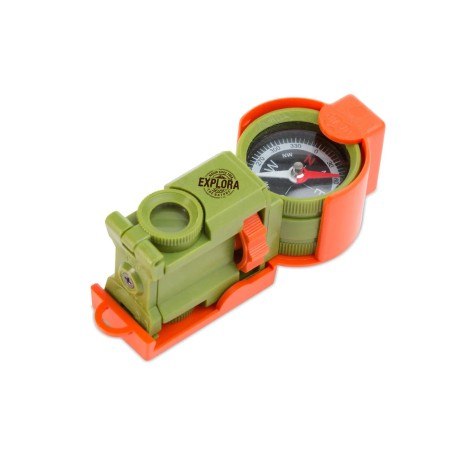 Multifunkční pomůcka s kompasem pro malé průzkumníky od 4 let. Praktická skládací pomůcka pro zvídavé děti v sobě ukrývá hned několik funkcí: dalekohled, lupu, kompas, zvětšovací zrcátko, pozorovací rovinu, signální zrcátko a stereoskopický prohlížeč. Díky kompaktním rozměrům se snadno vejde do kapsy nebo na opasek.