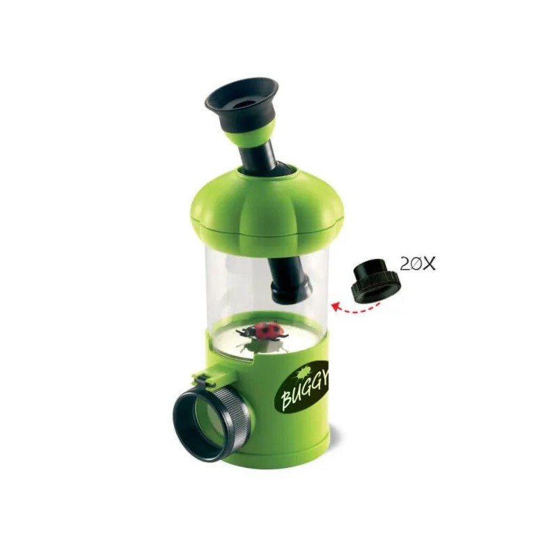 Pozorujte přírodu zblízka! Tento chytrý kelímek s mikroskopem je ideální pomůckou pro malé průzkumníky od 6 let, kteří rádi objevují svět kolem sebe. Nabízí hned tři možnosti pozorování – shora mikroskopem, ze strany i zespodu. Umožňuje zkoumat hmyz, květiny, listy, kamínky, mince nebo jiné drobné předměty.