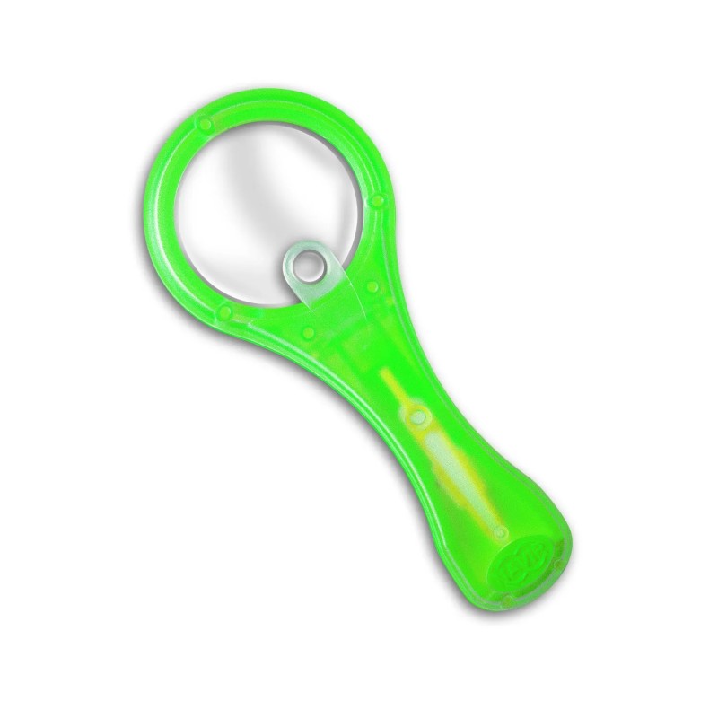 Lupa z ekologického ABS plastu s vloženou druhou čočkou je skvělým společníkem pro malé průzkumníky od 6 let. Rukojeť se otevírá jako kompas, což umožňuje položení lupy na pracovní plochu bez použití rukou. Uvnitř rukojeti je odnímatelná pinzeta, která nabízí možnost snadné manipulace s drobnými předměty.