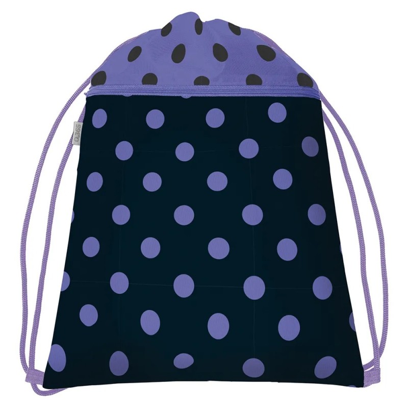 Sáček na tělocvik s puntíkatým motivem je praktickým doplňkem do školy na uložení přezůvek či oblečení na tělesnou výchovu.