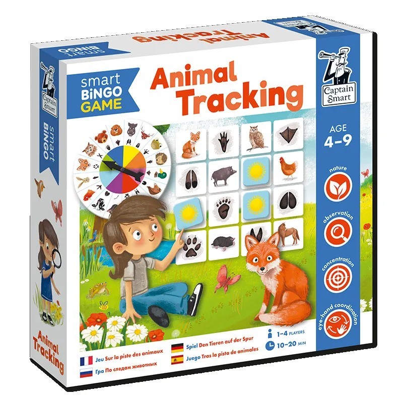 Roztočte kolo a vydejte se vstříc dobrodružství s přírodou! Jedinečná logická hra bingo pro 1-4 hráče od 4 do 9 let. Pozorujte zvířata žijící v lese, parku, na louce a na farmě, staňte se stopařským šampionem a získejte trofej!