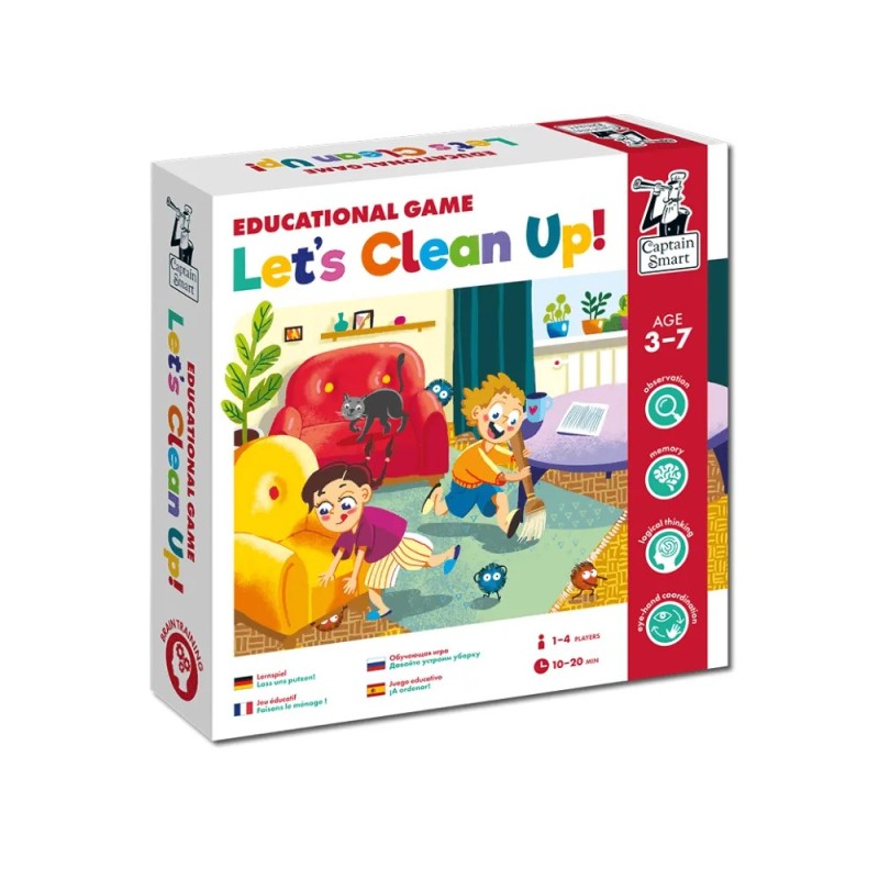 Přijměte úklidovou výzvu a procvičte si své reflexy. Zastavte zlomyslné prachové koule, než se dostanou k vašim ponožkám, panenkám nebo autům! Hra vás naučí třídit předměty podle typu, velikosti nebo barvy. Trénujte paměť, postřeh, koncentraci a logické myšlení. Ať je úklid spojený s potěšením, ne s nudnou rutinou! Zábavná hra Pojďme uklízet pro 1-4 hráče od 3 let.