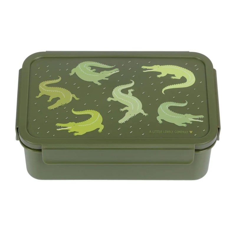 Praktický svačinový box s potiskem krokodýlů děti využijí na svačinu do školy nebo na výlety. Díky vzduchotěsnému zacvakávacímu víku a vyjímatelné nádobce se dvěma přihrádkami můžete do boxíku uspořádat svačinu na celý den.