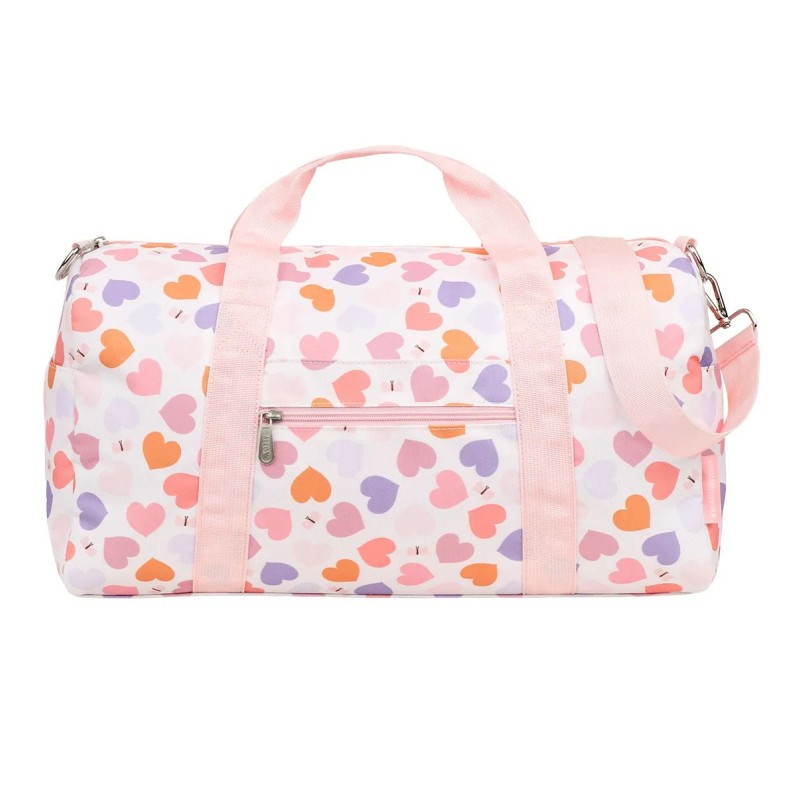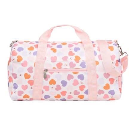 Lehká a odolná cestovní taška s motivem srdíček je ideální na dovolenou nebo jako sportovní taška na kroužek. Taška má dvě ucha do ruky a jeden nastavitelný odnímatelný ramenní popruh. Polyesterový materiál je pevný, lehký a zdobí ho barevný potisk.