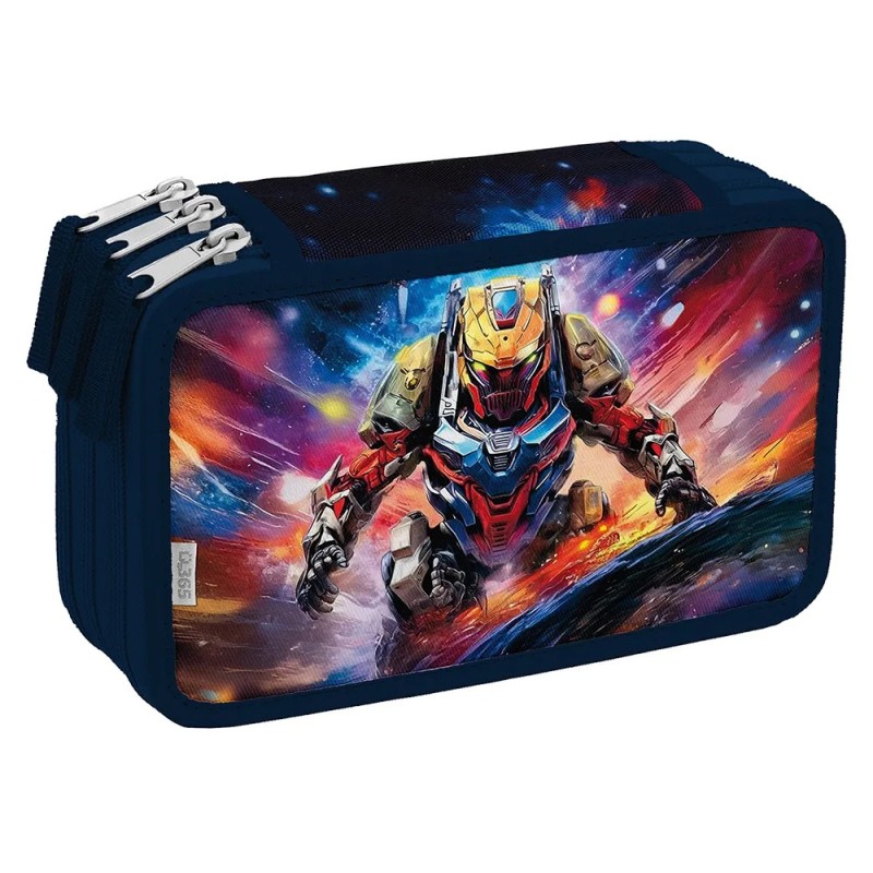 Třípatrový školní penál s klučičím motivem pojme více psacích a školních potřeb. Jednotlivá patra školního penálu obsahují gumičky na pastelky a psací potřeby, místo na ořezávátko i gumu, průhlednou kapsičku na rozvrh a síťovanou kapsičku na drobnosti.