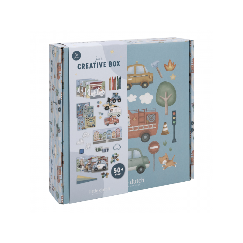 Podpořte dětskou fantazii s touto velkou kreativní sadou Little Dutch s tématikou dopravních prostředků a života ve městě. Krabice je plná výtvarných pomůcek, které inspirují k tvoření, malování i lepení.