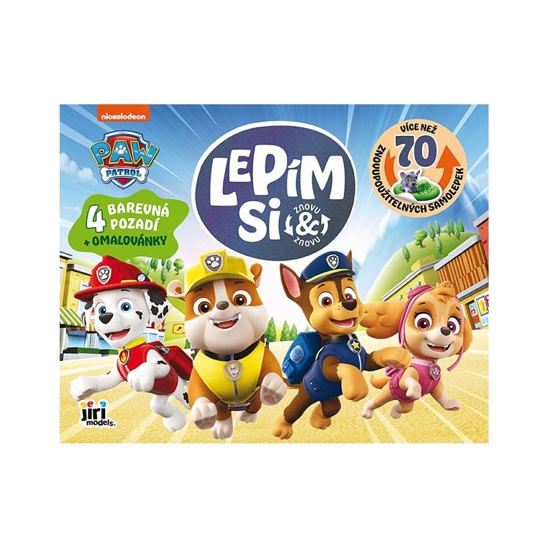Samolepková knížka Lepím si znovu a znovu s oblíbenými hrdiny Tlapkové patroly obsahuje 4 stránky s barevným pozadím, 4 stránky plné opakovaně použitelných samolepek a 8 listů s omalovánkami.