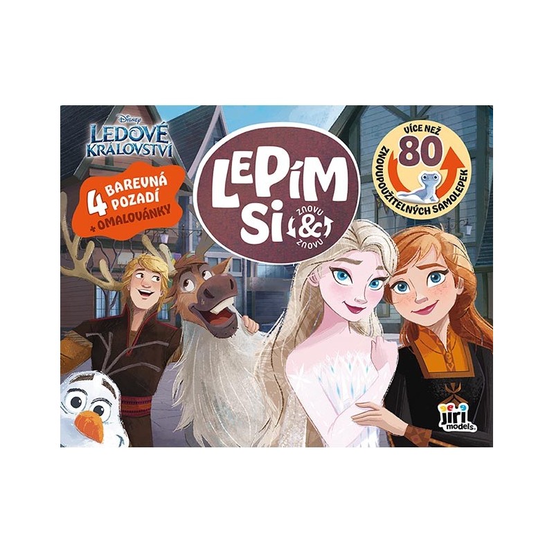 Samolepková knížka Lepím si znovu a znovu s oblíbenými hrdiny Frozen obsahuje 4 stránky s barevným pozadím, 4 stránky plné opakovaně použitelných samolepek a 8 listů s omalovánkami.